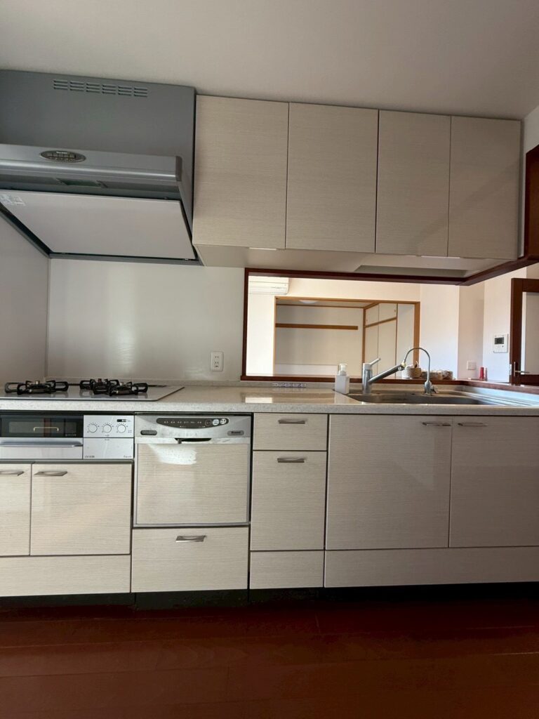 システムキッチンは吊り収納も充実して食洗器も付いてます