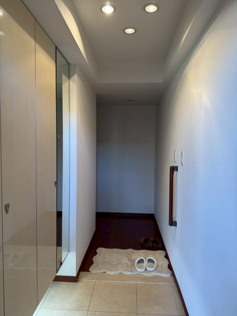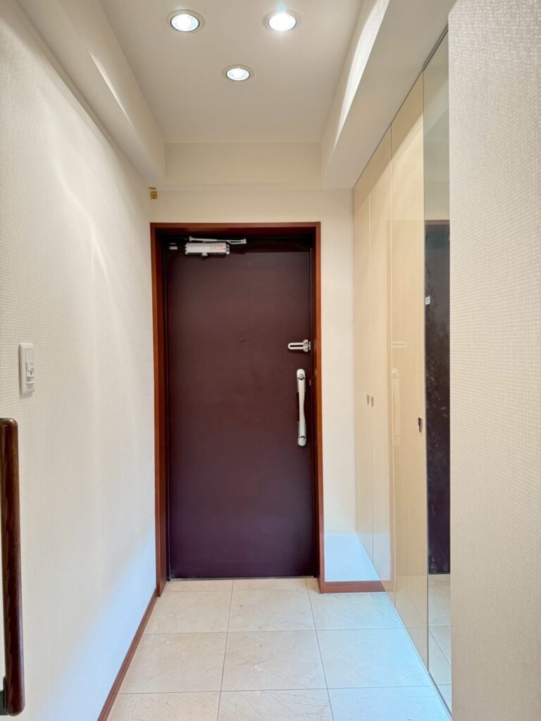 玄関ホールは人勧センサーで明るく大理石仕上げ